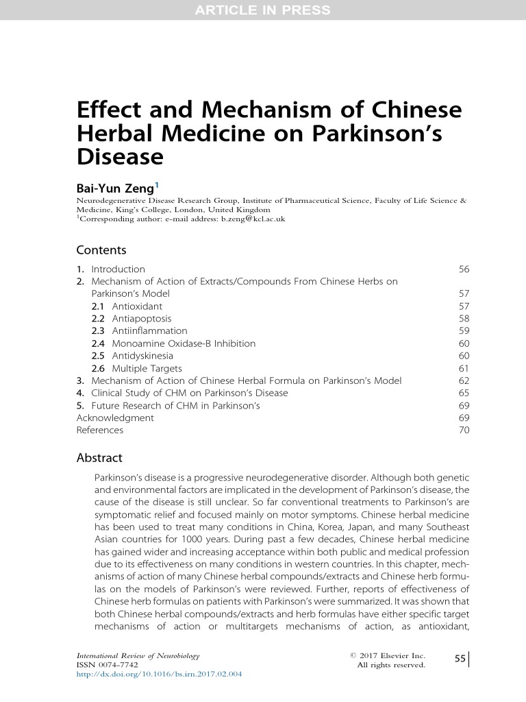 While nourishing kidney and liver is often accomplished by herb therapy calming wind syndromes is more frequently attempted through acupuncture therapy. Parkinsons symptoms such as muscle tremors slowness of movement and rigidity are caused by the. The evidence from the studies suggests that Chinese herb medicine has potential acting as neuroprotective to slow down the progression of Parkinsons and it is able to simultaneously treat both motor and nonmotor symptoms of Parkinsons.