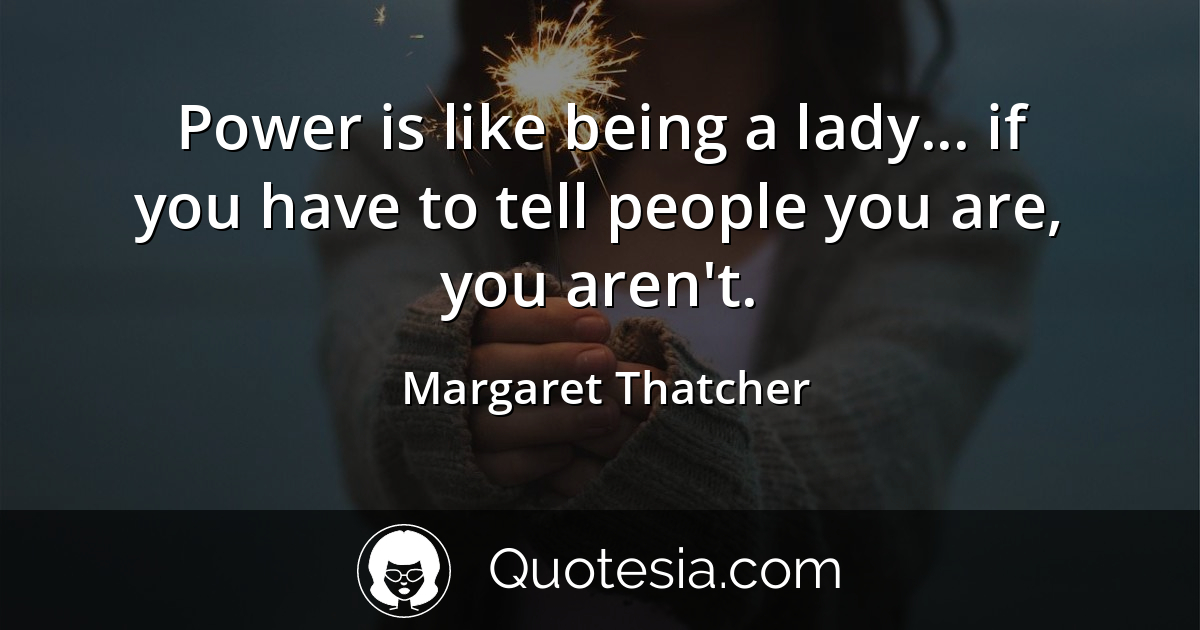 Power is like being a lady. Power is like being a lady. If you have to tell people you are you arent- Margaret Thatcher. If you want something said ask a man.