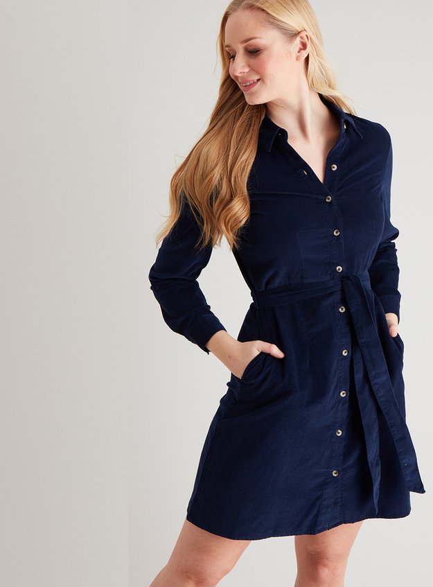 Navy corduroy shirt. This wouldnt be our first choice. Ad No Extra Preço Baixo é Todo Dia. Model wears a size 10.
