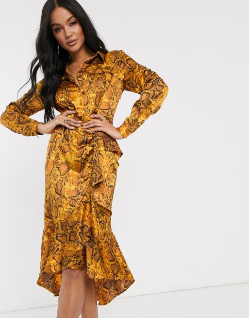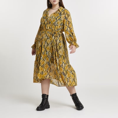 Home Dress Pleated yellow snake print midi dress. Order today shop it like its hot at Missguided. Fast delivery full service customer support.